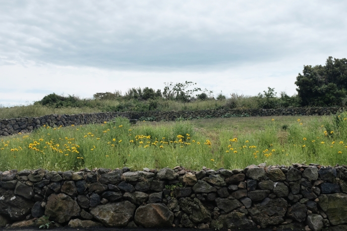 카페의 뒷쪽은 낮은 돌담과함께 들판이 조성되어있다.