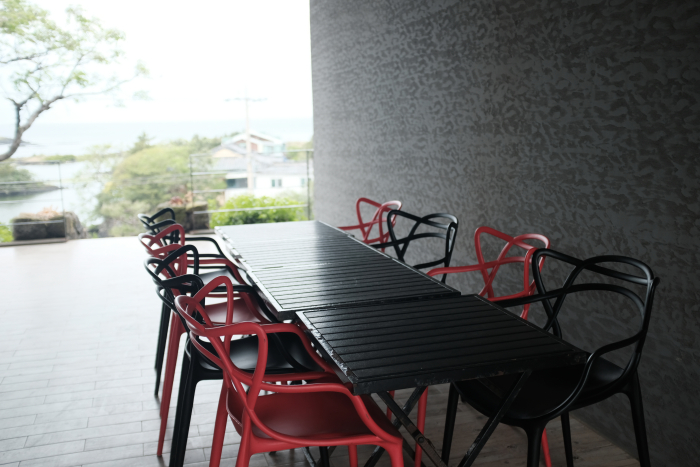 카페입구에 들어서기 전 건물 사이에 실외테이블이 설치되어있다. 천정이있어 항상 그늘이 조성되는데다 양 옆으로 크게 뚫려있다보니 제법 시원하다는 생각이 들었다.