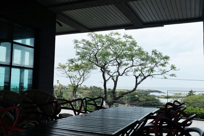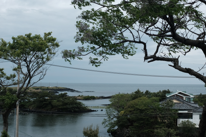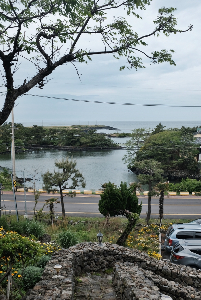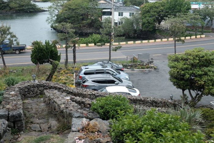 돌담을 올라 정면을 바라보면 조천읍의 바다와 해안가를 만나게 된다. 날이 흐려 제대로된 뷰를 볼 수는 없었지만 날이 화창한날 이 곳의 뷰는 훌륭할 것이라 생각된다.