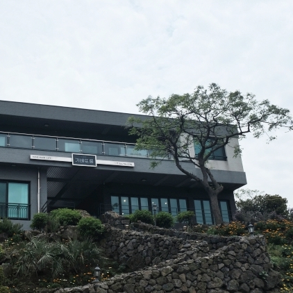 우리가 한달동안 지냈던 조천읍을 천천히 거닐다 우연히도 언덕위에 있는 카페 한 곳을 발견했다.