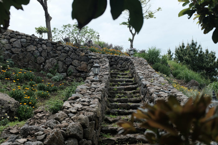 가베또롱의 돌담길은 그리 길지않은 길이지만 주변으로 조경도 훌륭하고 돌담위의 소소한 인테리어가 분위기있게 배치되어있었다.