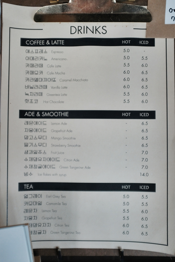 가베또랑카페에서 판매중인 음료나 음식등의 가격은 저렴하지는 않았다. 아메리카노가 기본 5천원이다. 이외의 음료들도 6~7천원으로 조성되어있다.