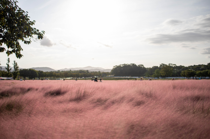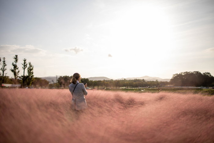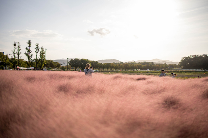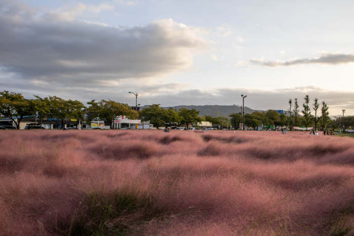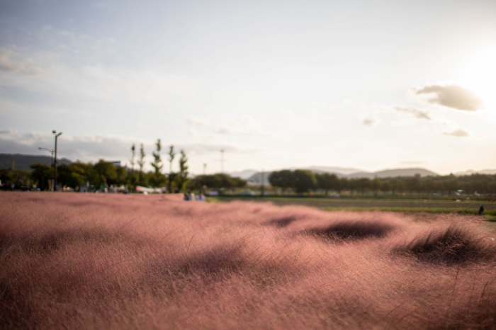 경주 첨성대공원 일대에서는 아주 넓은 면적의 핑크뮬리가 지천으로 자라있습니다. 덕분에 수많은 관광객들이 이 곳을 방문하여 자동차도 사람도 인산인해를 이루고 있습니다.