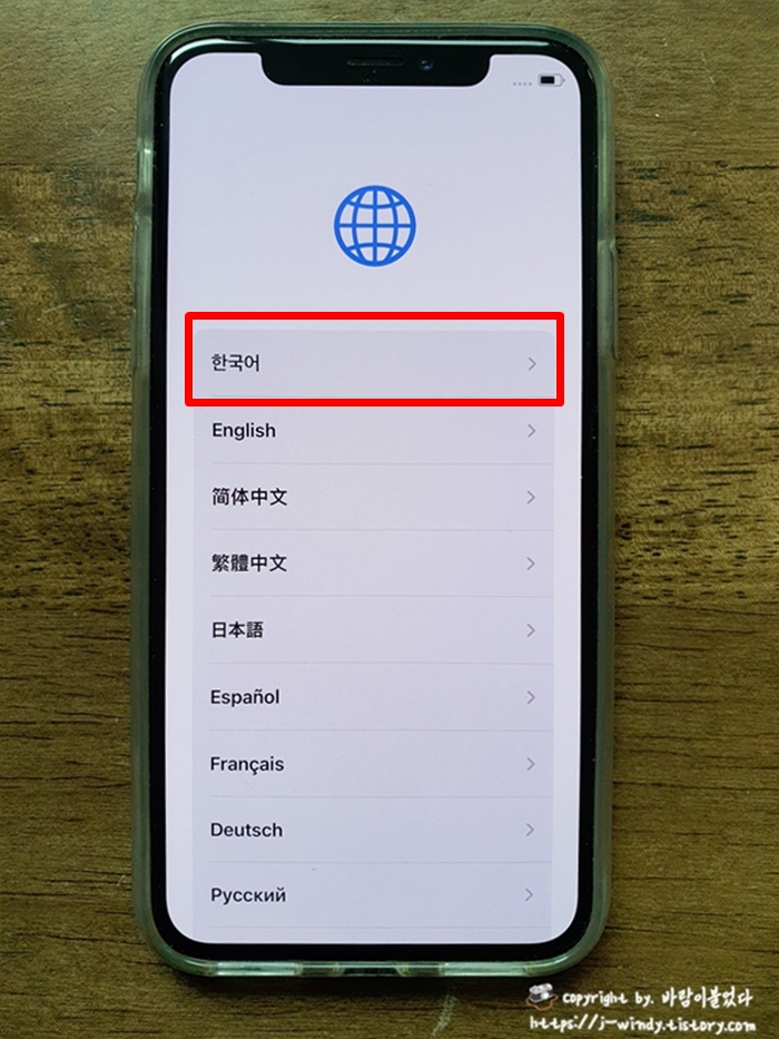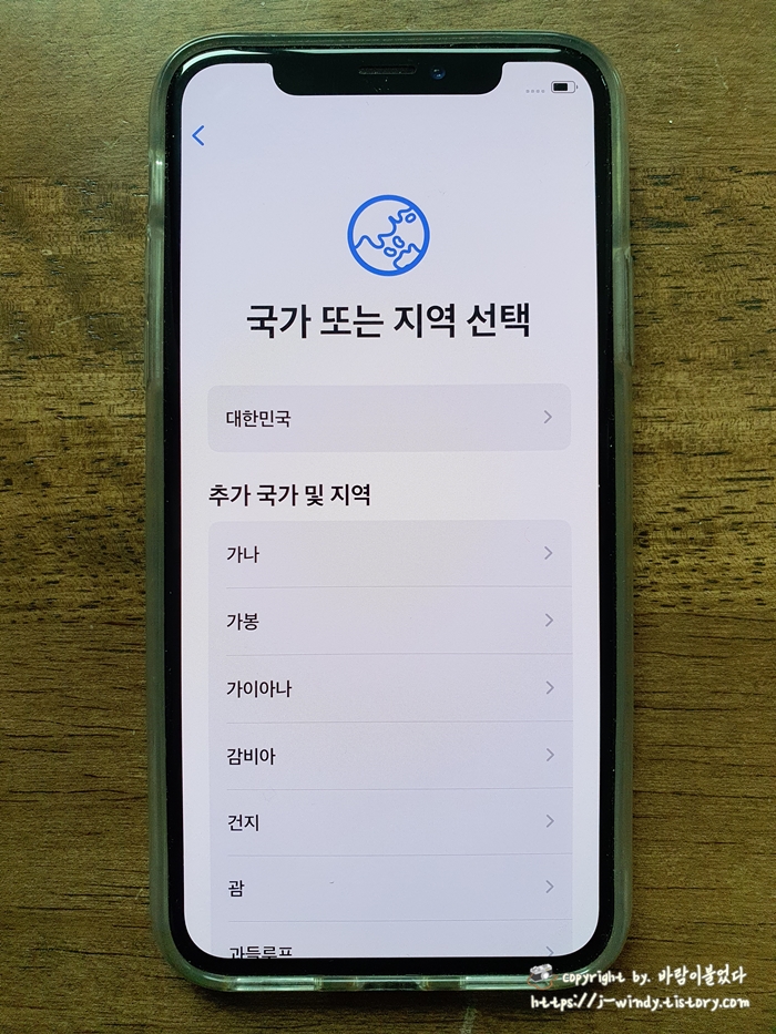 한국어를 선택한 다음 국가를 대한민국으로 선택해준다.