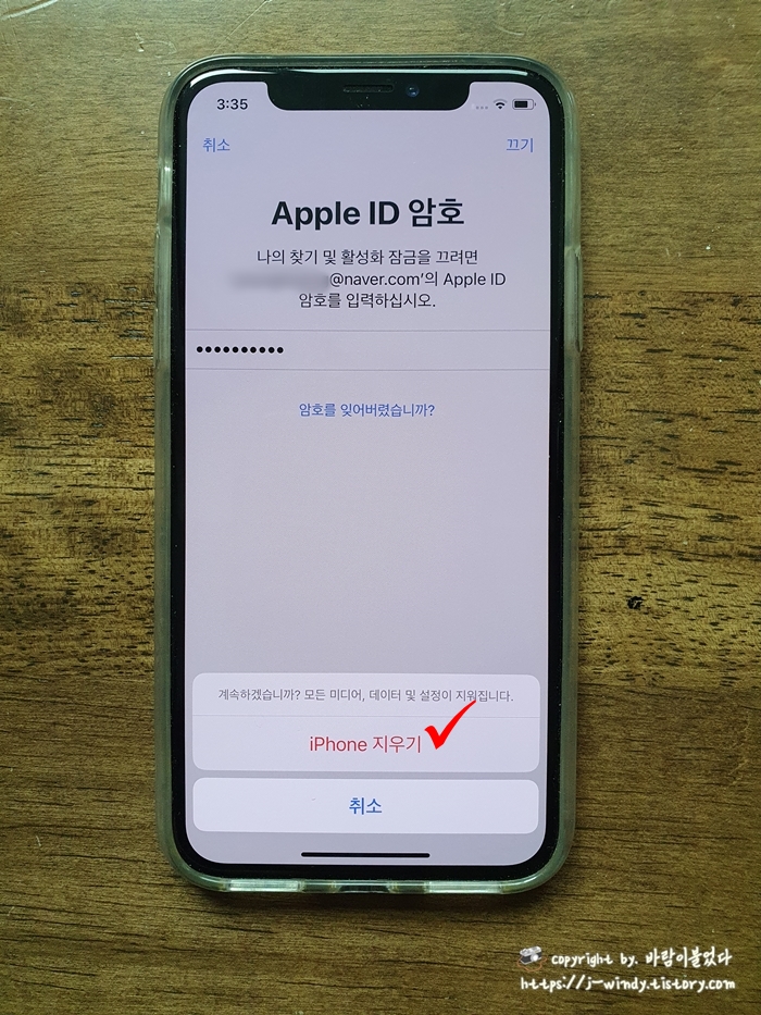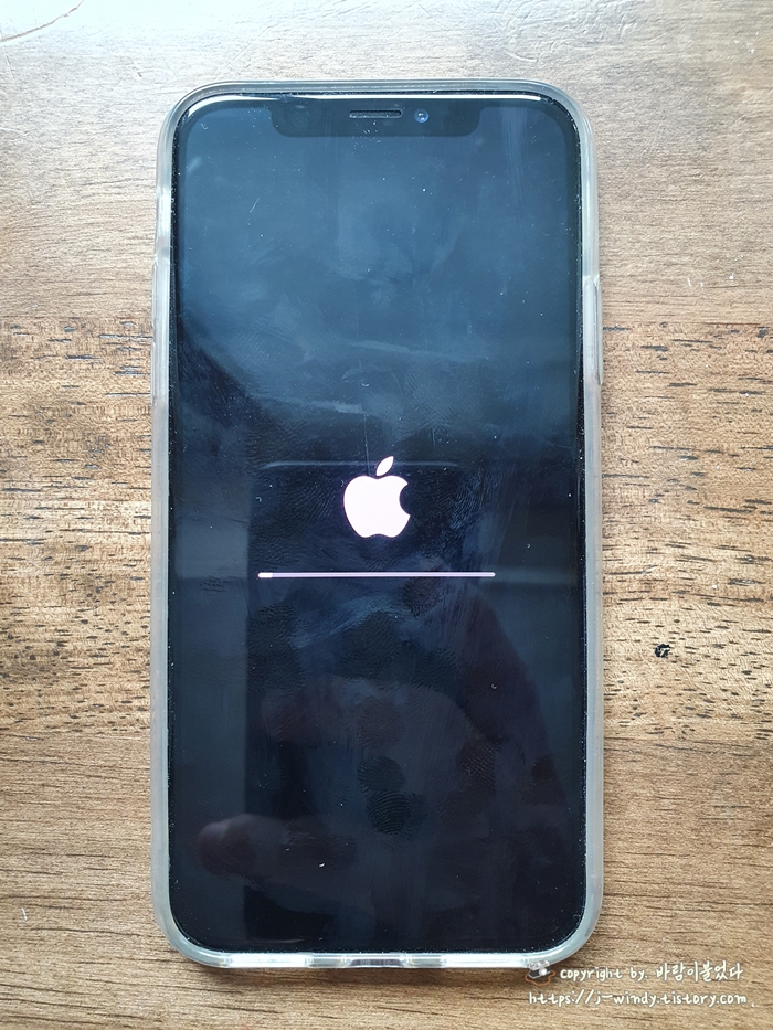 애플 Apple ID 암호를 입력하고 'iPhone 지우기' 를 선택하면 아이폰이 재부팅된다.