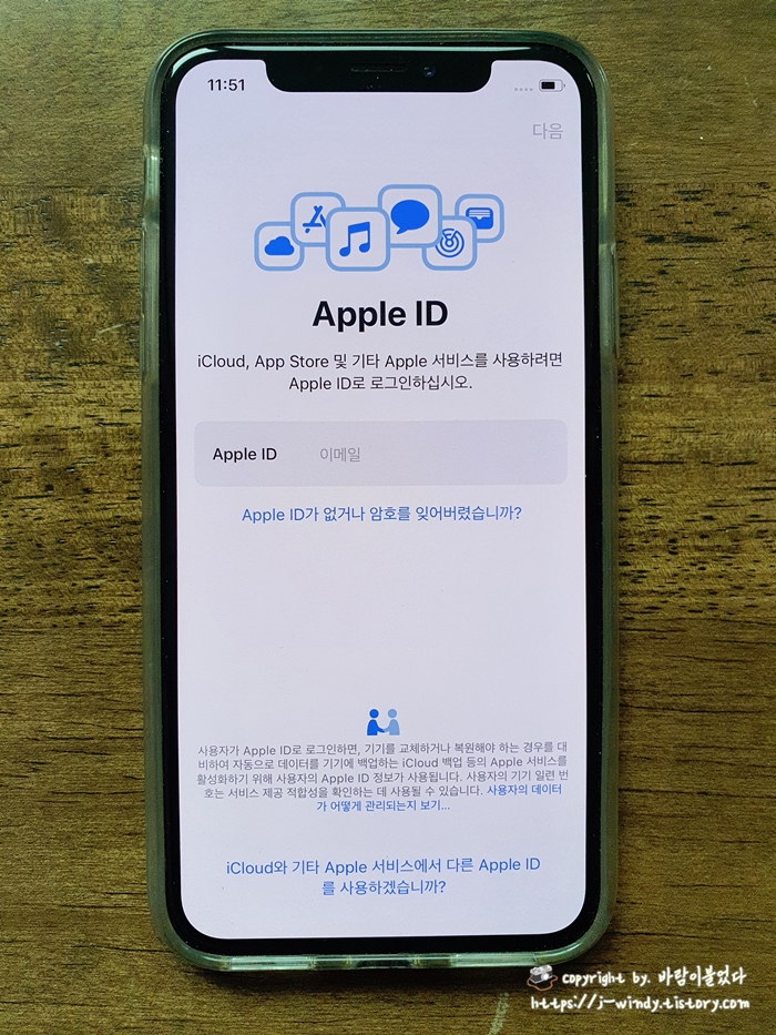 애플 ID를 새롭게 생성하고 데이터로 전송한 문자메시지, 사진 등을 확인하면 되겠다.