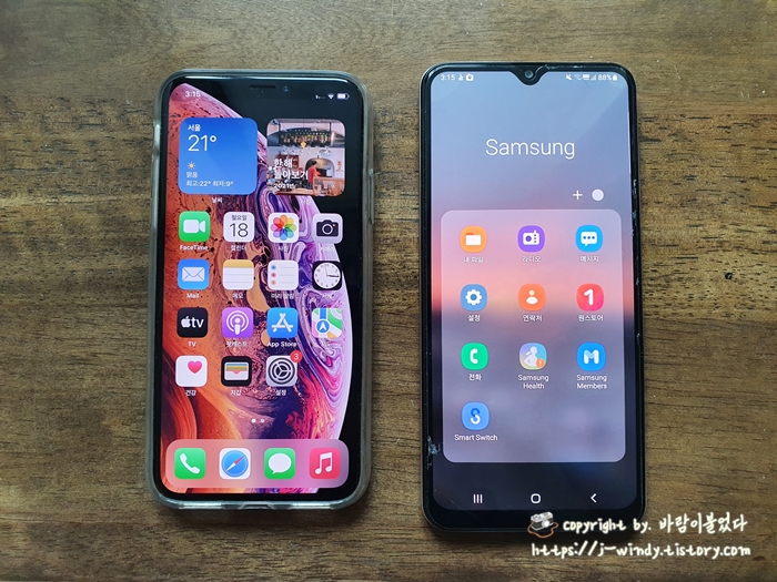 사용된 기종은 아이폰XS 와 삼성 갤럭시 와이드 4 스마트폰이다.