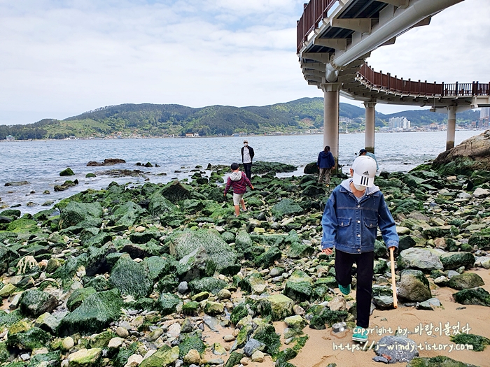 어디서 구멍치기를 할까 고민하다가 지세포 소노캄 아래에 해양데크 아래를 선택했다. 위 사진에 보이는 바다스타일 뿐 아니라 다양한 환경에서 바다물이 고여만 있다면 낚시가 가능하다.
