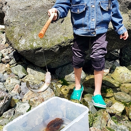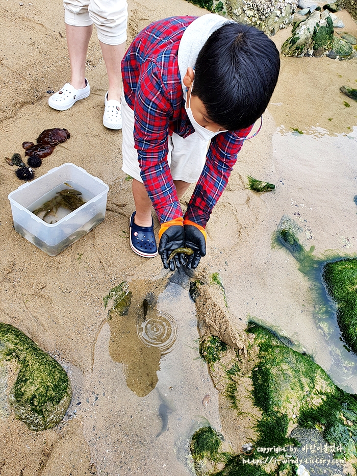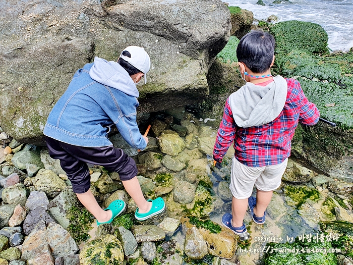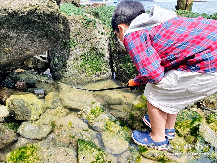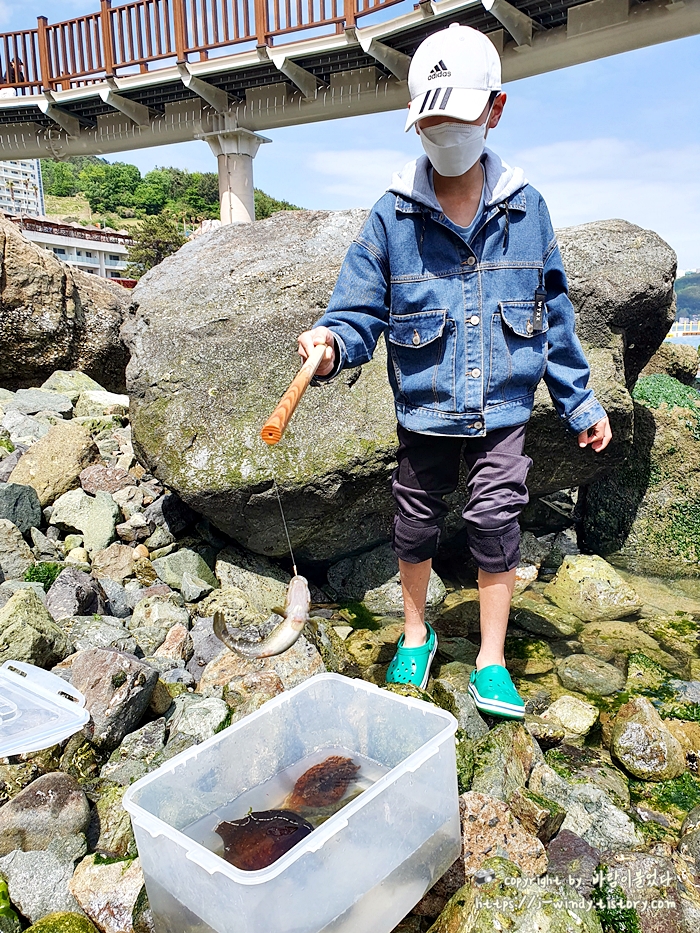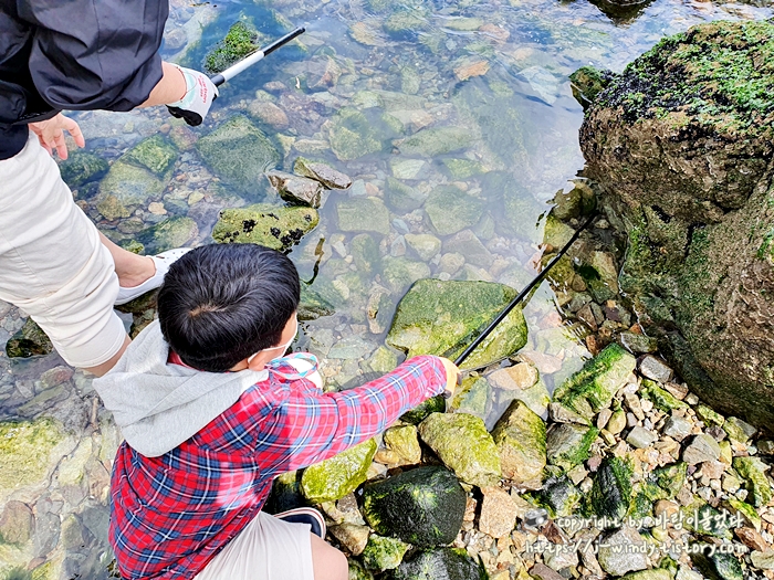 전문적인 낚시대가 없더라도 셀프로 간단하게 낚시대를 만들어 아이들과 함께 즐거운 시간을 보낼 수 있다. 직접 해보고 느낀 점은 막대기의 길이가 한 1.5m 정도된다면 아이들이 좀 더 편하게 구멍치기 낚시를 할 수 있을것 같다는 점? 나무막대기의 길이가 너무 짧다보니 바위 속으로 팔을 더 뻗어야하는 일이 생긴다.