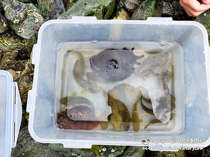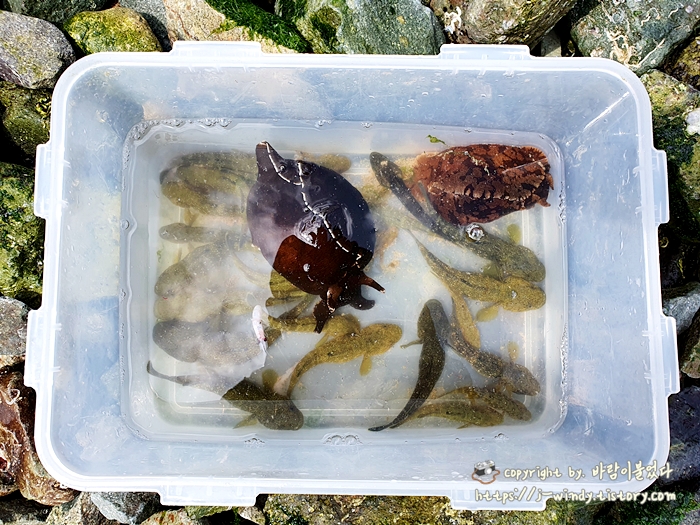 주변에 거닐고 있던 군소도 잡고 잡은 물고기의 사이즈도 다양하다. 해당 연안에 서식하는 물고기의 종류에 따라서 잡을 수 있는 물고기가 달라지기 때문에 다양한 포인트에서 낚시를 해보는 것이 포인트. 방파제 돌맹이 사이에서는 베도라치도 많이 잡아봐었다.