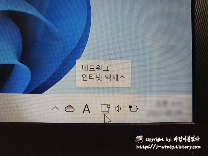 인터넷이 되지 않았을 때에는 위와 같이 지구본 아이콘에 '인터넷 액세스 없음'이라는 문구가 뜬다.