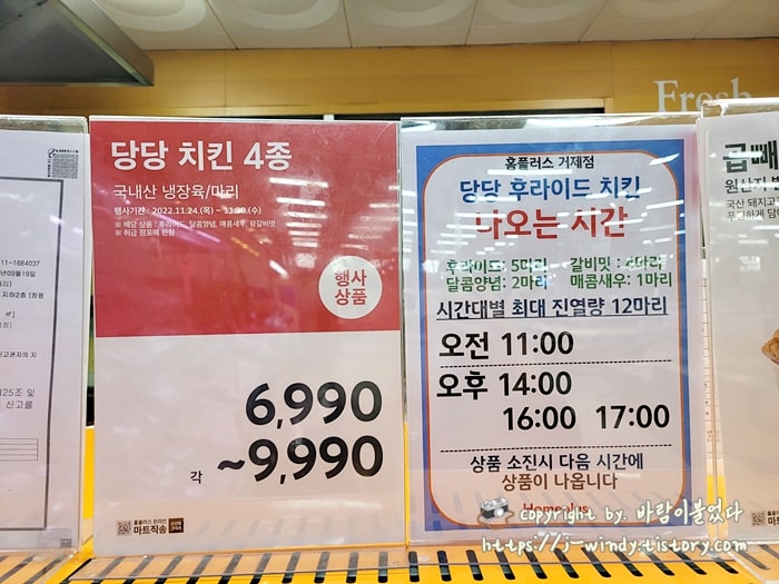 홈플러스 당당치킨 4종 가격