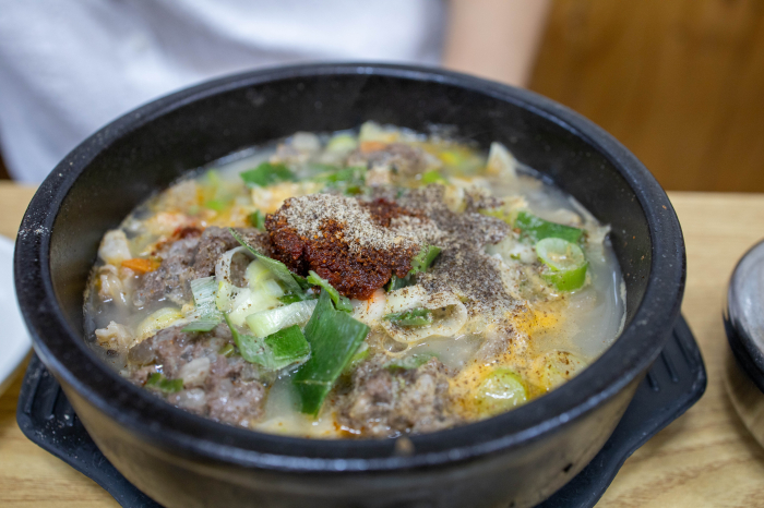 함경도 전통음식, 사골국물, 소고기, 콩나물, 고사리 양념 다데기를 넣어 만든 국밥.