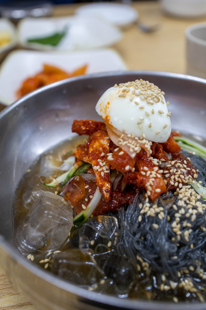 사진에서 보시는것처럼 냉면위에 명태회가 고명으로 올려져있답니다. 냉면자체는 아주 맛있게 먹을만했지만 역시는 역시나 명태회는 제 입맛에는 비려서 못먹겠더군요. 저처럼 해산물을 싫어하는 분들에게는 비추입니다.
