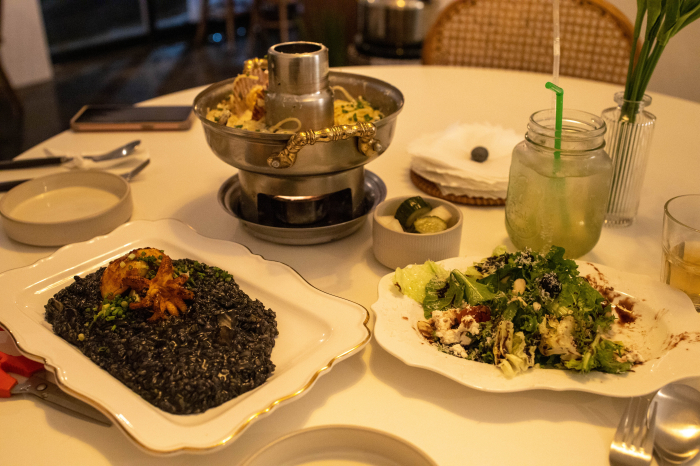 우리는 이 식당의 대표메뉴라 할 수 있는 '이순신선로파스타'와 '먹물오징어리소토'를 주문해 보았습니다.