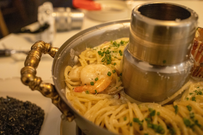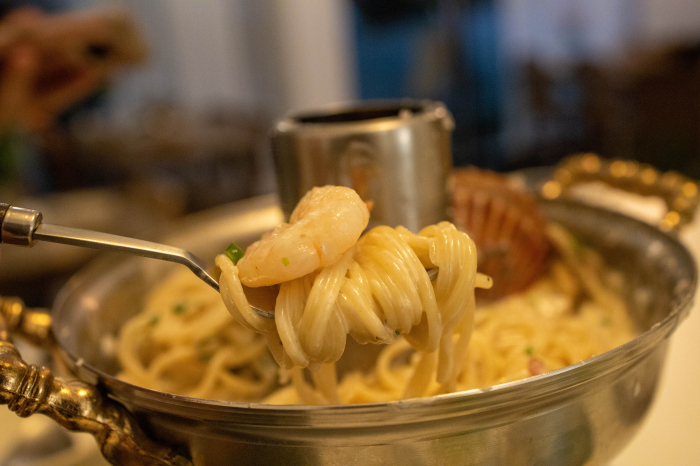 비쥬일이 넘나 훌륭합니다. 신선로위에 파스타를 올려놓을 생각을 어떻게 했을까요? 지역특색에 맞추어 이름도 이순신선로파스타. 꽤 괜찮은 선택이었던 것 같습니다.