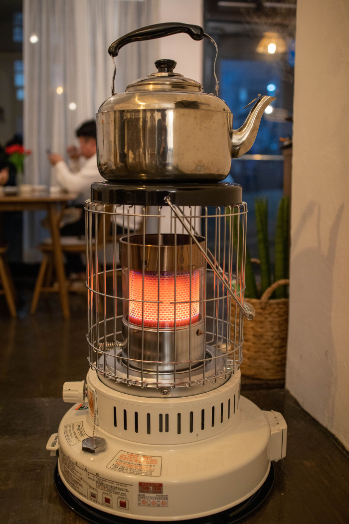 정말 오랜만에 만나는 석유난로라서 너무 반가웠답니다. 어렸을 적 겨울날에는 이런 석유난로를 흔히 볼 수 있었지만 요즘은 쉽게 볼 수가 없군요. 난로 위에 주전자에는 보리차가 끓고 있었습니다.