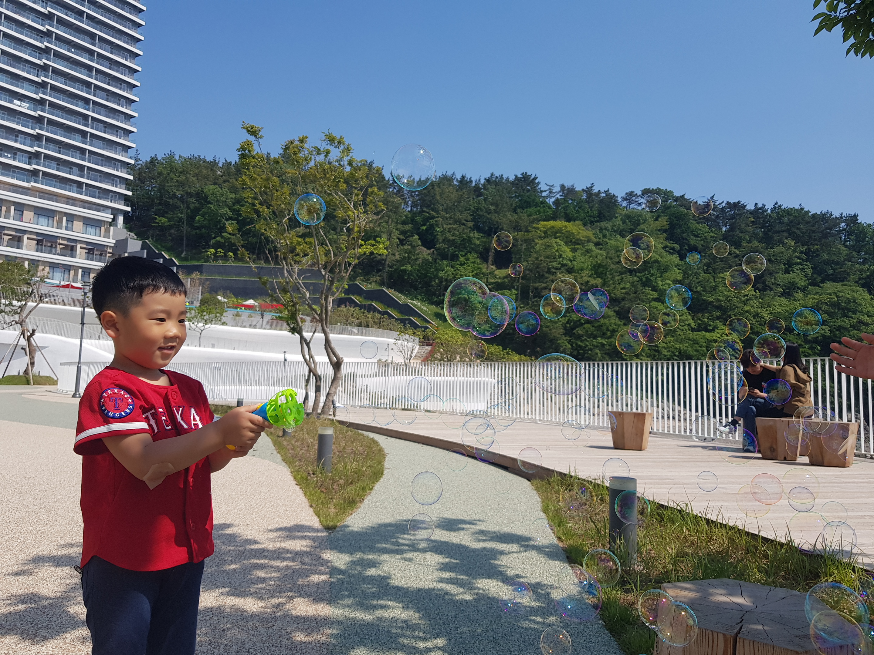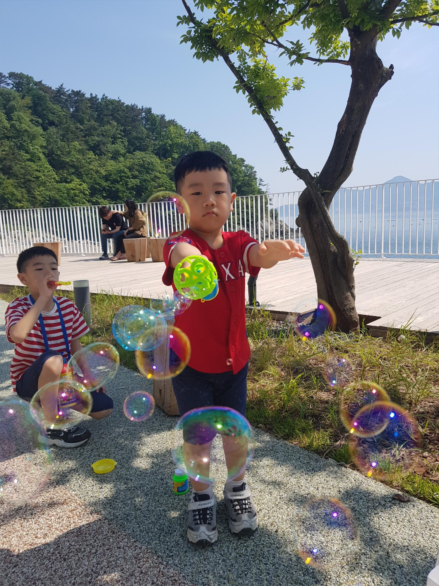 일일이 사진을 다 찍지는 못하였지만 비눗방울이 시원시원하게 나와주고 있습니다. 새로운 장난감 덕분일지도 모르지만 지치지도 않는 형제들은 꽤 오랜 시간 동안 비눗방울 놀이를 하며 시간을 보냈습니다. 엄마 아빠는 힘들지만 즐거워하는 아이들을 보니 기분 좋습니다. 비누방울 놀이의 가성비 갑이라고 해도 좋을 만큼 저렴한 가격, 손쉬운 사용, 생각지도 못한 선풍기 기능까지 정말 좋은 아이템이었습니다. 다른 종류의 좋은 아이템이 생기면 다시 찾아뵙도록 하겠습니다.