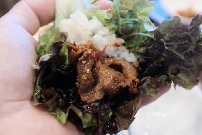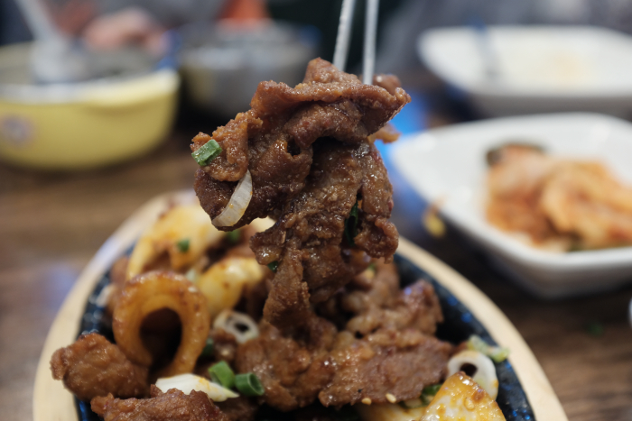 석쇠불고기보다 확실히 짜고 맵습니다. 덕분에 밥이랑 먹기 더 좋았습니다.
