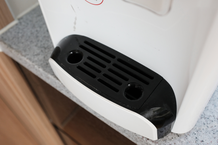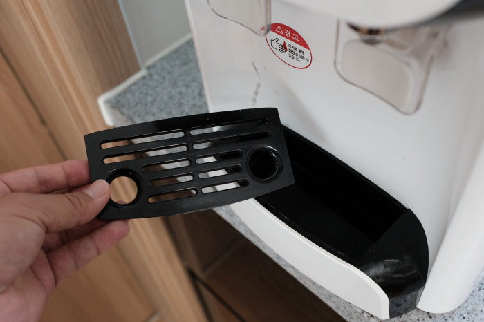 자동으로 배수가 되게끔 되지 않기 때문에 이 물받이통에 물을 부어버린다면 주기적으로 속에 들어있는 물기를 제거해야 합니다.