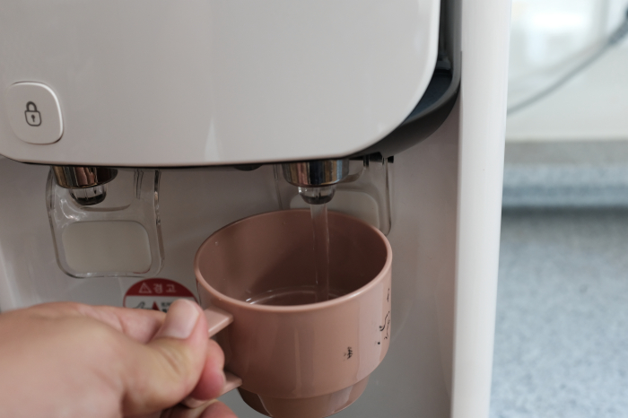 냉수와 온수기능은 있지만 기존의 정수기에서 잘 이용해오던 '미온수' 기능은 없기 때문에 미온수를 이용하기위해서는 조금 번거롭더라도 찬물과 뜨거운물을 섞어주면 됩니다.