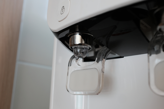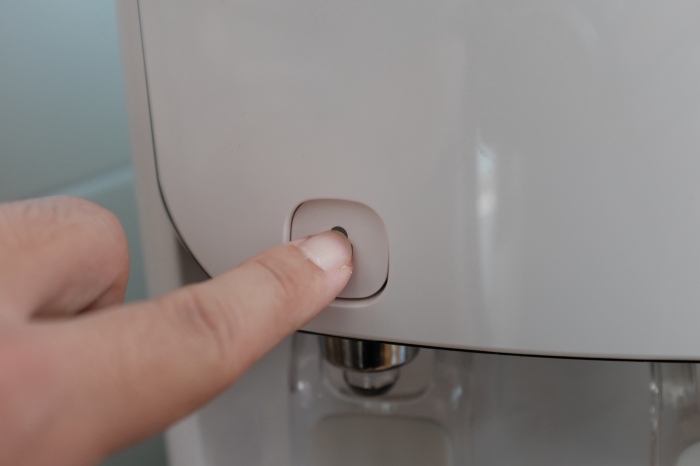 버튼의센터가 아닌 약간 벗어난 위치를 눌러버리게되면 버튼이 들어간 상태로 복구가 되지 않거나 '턱'하는 걸리는 소리가 날때가 자주 있습니다. 확실히 저렴한 정수기이다보니 이런 세세한 부분은 사용하면서 상당히 불편함을 느꼈습니다.