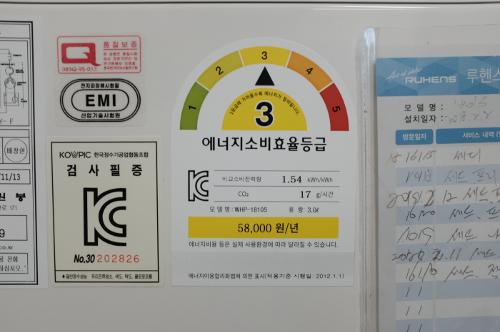 하루종일 작동하고 있어야할 가정용 정수기임을 감안하면 에너지효율등급이 아쉽습니다.