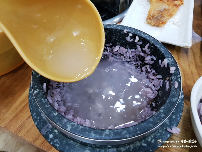 돌솥에 남아있는 밥으로 숭늉을 만들어 먹는다.