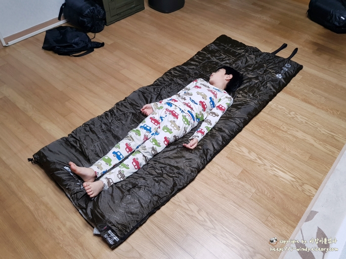 이렇게 사진으로는 이 침낭의 포근함을 전하기는 힘들다.