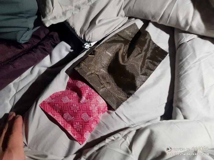 취침을 하기전 미리 데워둔 핫팻을 넣어둔 상태로 사용해보았다.