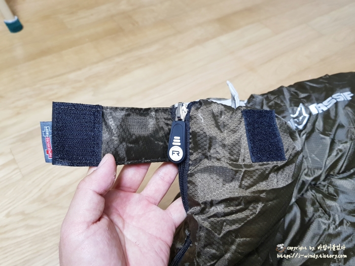 침낭의 겉재질은 방수처리가 되어있기 때문에 스펙상 우천, 서리, 습기 등으로부터 침낭을 보호할 수 있다.