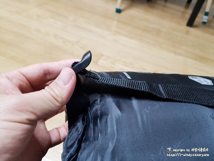 침낭이 흐트러지지 않게끔 고정 밴드도 2개가 기본으로 달려있기 때문에 접기가 수월하다.
