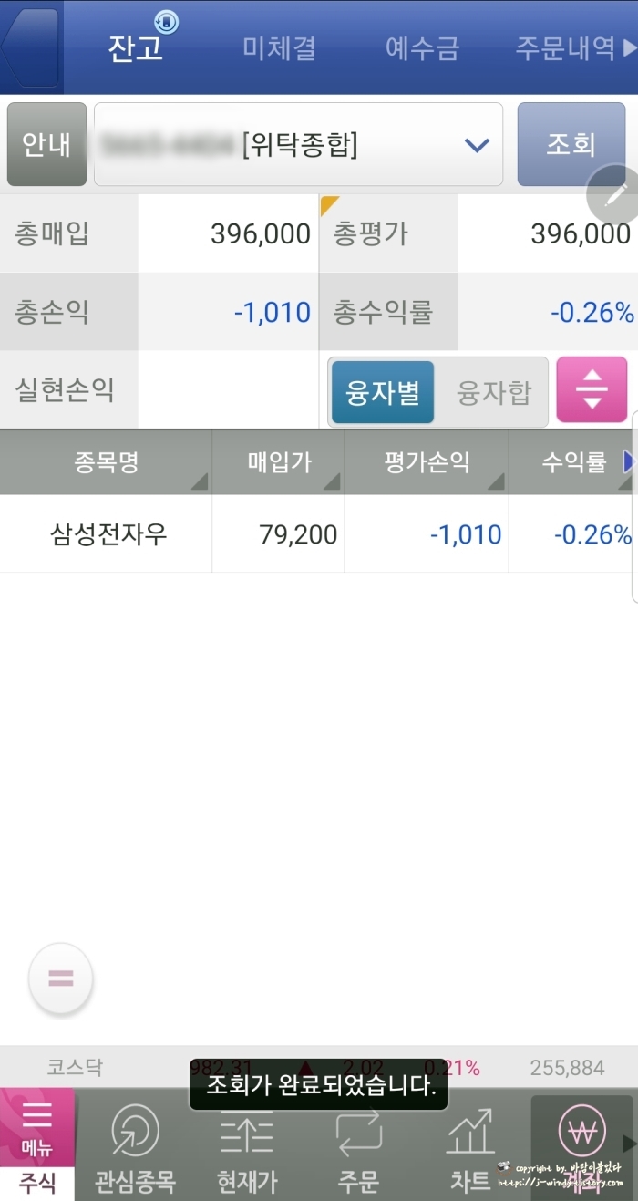 내 계좌의 잔고로 들어가 삼성전자우 주식이 제대로 들어와있는지 확인해보자.