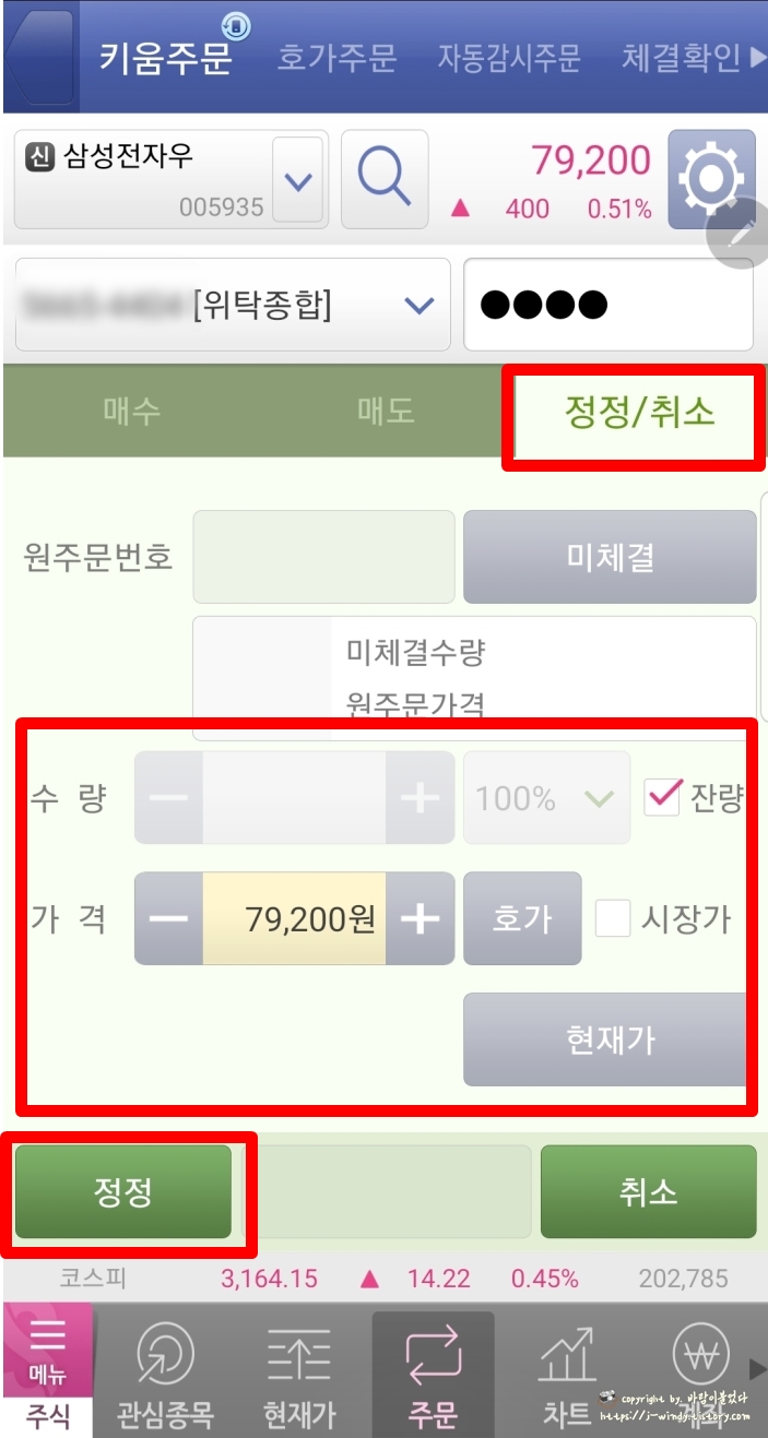 혹시나 주식주문이 체결되지 않았을 경우를 대비해 주문한 주식의 가격을 변경(정정)하는 방법도 함께 알아본다.