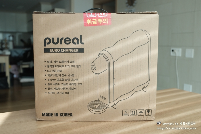 사실 원래 구입하기로 했던 퓨리얼직수정수기는 PPA-100로 가격이 194,000원 이었지만 돈을 10만원 정도 더 주더라도 이 제품을 너무도 가지고 싶어서 구입한 것인데 언박싱만으로도 너무 만족스럽다.