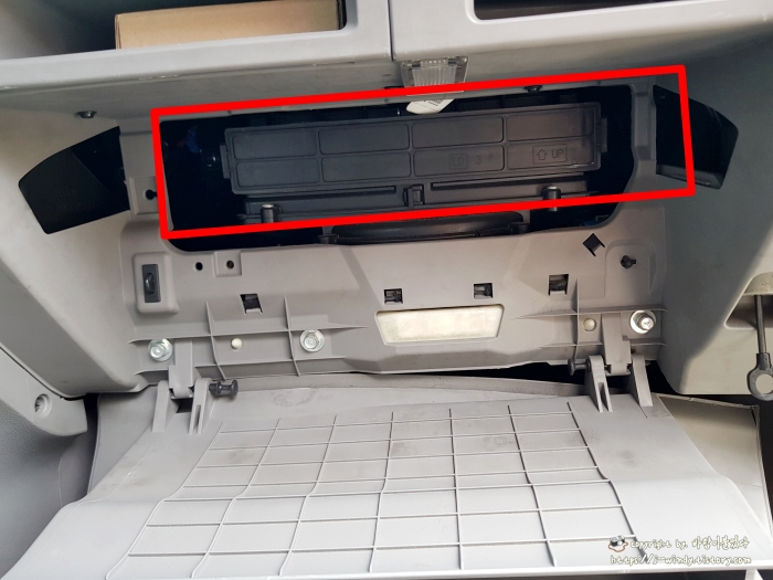 좌, 우 검은 플라스틱을 잘 제거했다면 이제 그랜드카니발의 에어컨필터 박스의 모습을 확인할 수 있다.