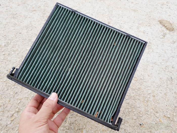 기존에 장착되어있던 에어컨필터는 손으로 빼내든가 바닥에 쳐내든가해서 제거해준다.