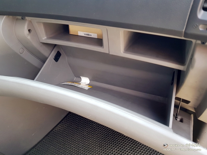 그랜드카니발 조수석 콘솔 내부의 모습. 넣어두었던 물건들은 모두 빼낸다.