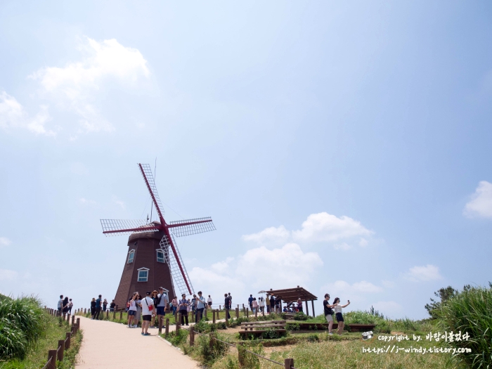 거제도 대표 관광지 바람의언덕. 바람의 언덕을 대표하는 풍차와 시원하게 부는 바람을 느낄 수 있는 곳이다. 여객선 터미널에 무료 주차 혹은 2천원에 시간제한이 없는 사설주차장을 이용해야한다. 사시사철 방문객들의 발길이 끊이지 않는 곳이기 때문에 여유로운 관람을 위해서는 이른 아침의 방문을 추천한다.