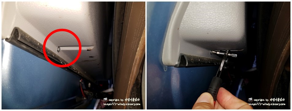 풀어낸 내장재 위 쪽의 나사를 풀어준다.
