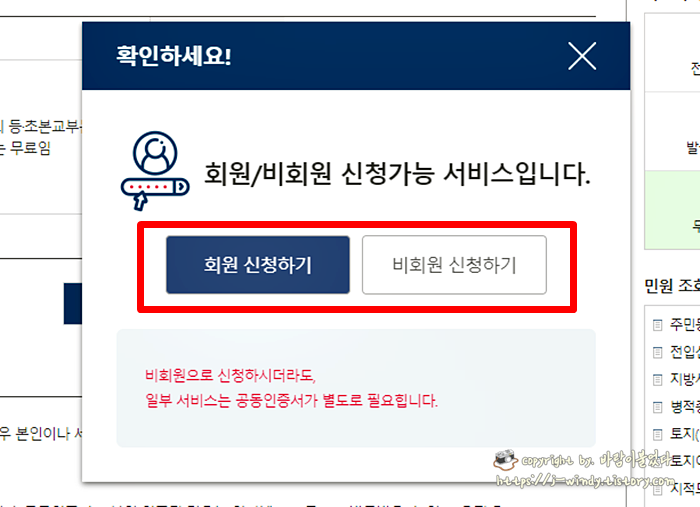 네이버 검색 후 '전자증명서'를 선택해 바로 들어온 사람이라면 위 사진과 같은 '민원안내 및 신청'페이지가 뜰 것이다.