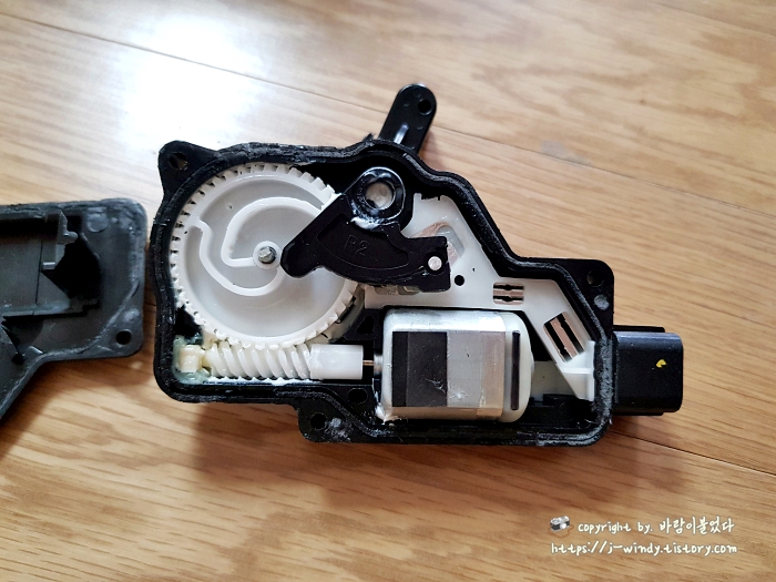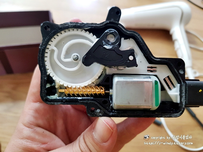 위 사진처럼 넣어주면 끝이다. 다만 여기서 끝내지말고. 모터의 황금색 나사산에 기존의 모터에 묻어있던 구리스를 군대군대 묻혀준다. 하얀톱니에도 구리스가 어느정도 묻어있긴 하겠지만 보다 오랜시간 고장없이 사용하기 위해서는 이 작은 작업 하나가 큰 영향을 줄 것이다.
