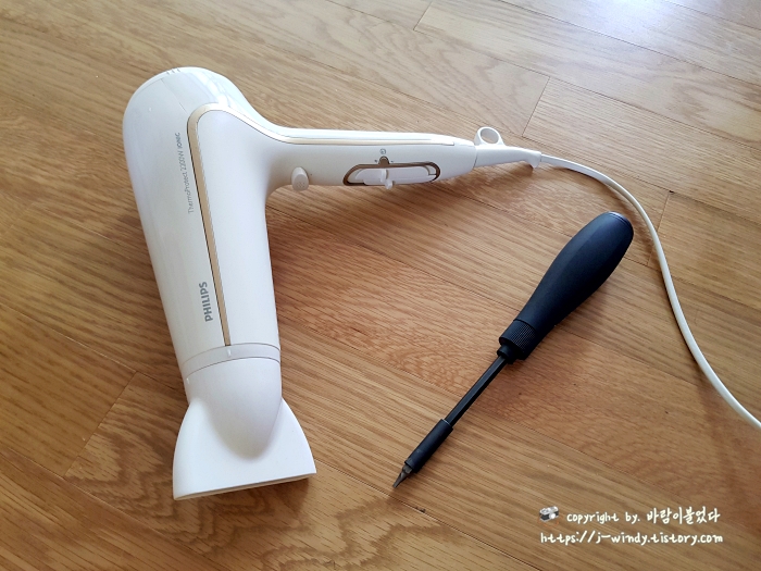 열풍기가 없는 나는 집에 있는 필립스 드라이기와 일자 드라이버로 작업해본다. 여기에 추가로 커터칼도 하나 준비해 놓자.