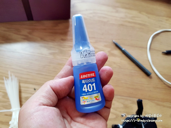 모터교체가 끝났다면 집에서 남아도는 순간접착제를 이용해 부품의 테두리에 뿌려준뒤 덮개를 덮어두도록하자. 혹시모를 상황에 대비해 케이블타이로 묶기도 했는데 케이블타이가 묶여진 상태에서는 조립시 문제가 발생할 수 있기 때문에 제거해주는 것이 좋다.