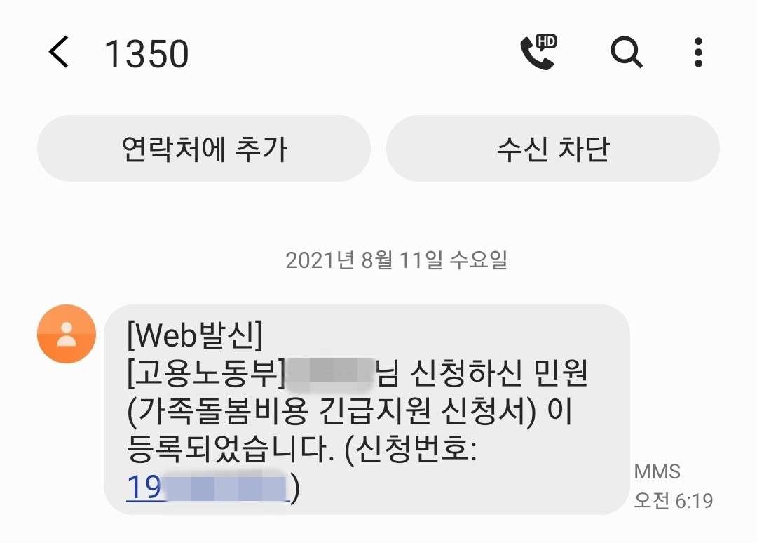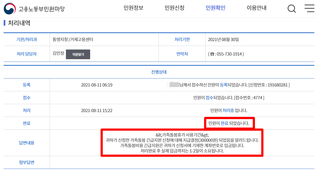 이제 내가 직접 고용노동부 홈페이지에서 가족돌봄비용 긴급지원 신청을 해본 기록을 남겨본다.