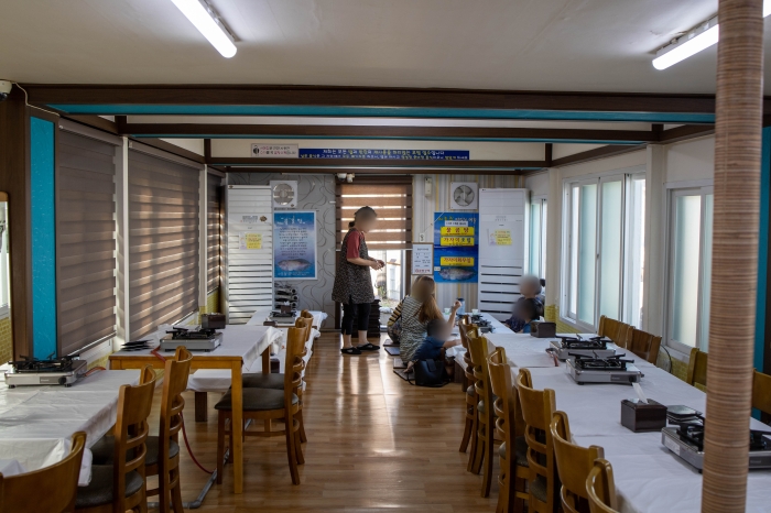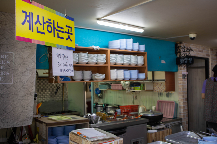 식당을 들어서면 왼편에 주방을 볼 수 있습니다.